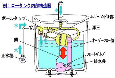 この場合オーバーフロー管よりタンク内に水が流れる。